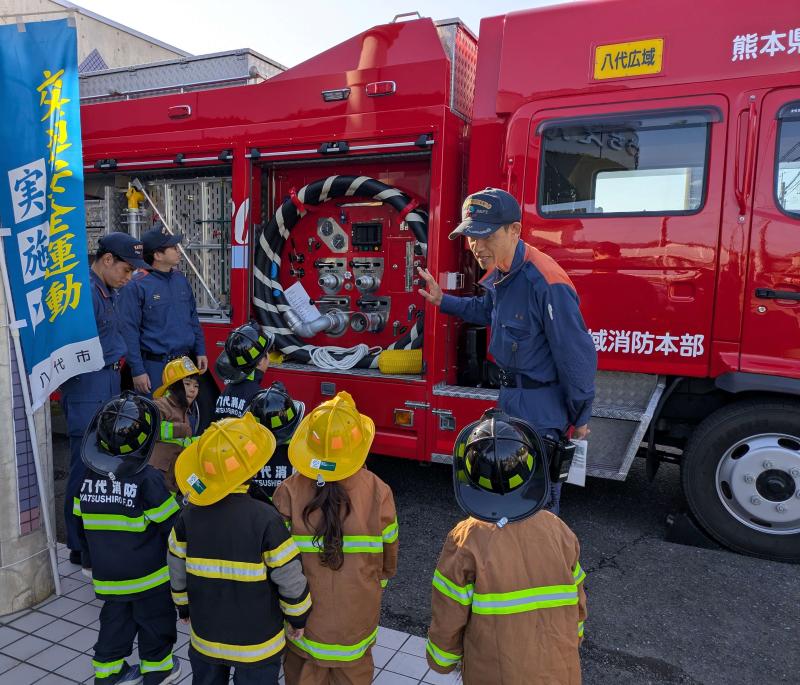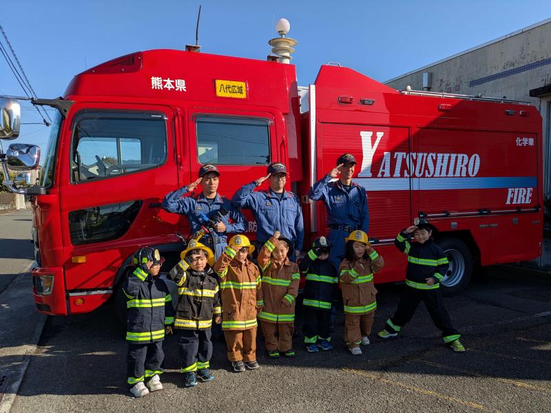 消防士さんに麦島幼稚園の避難の仕方等を見ていただきました。