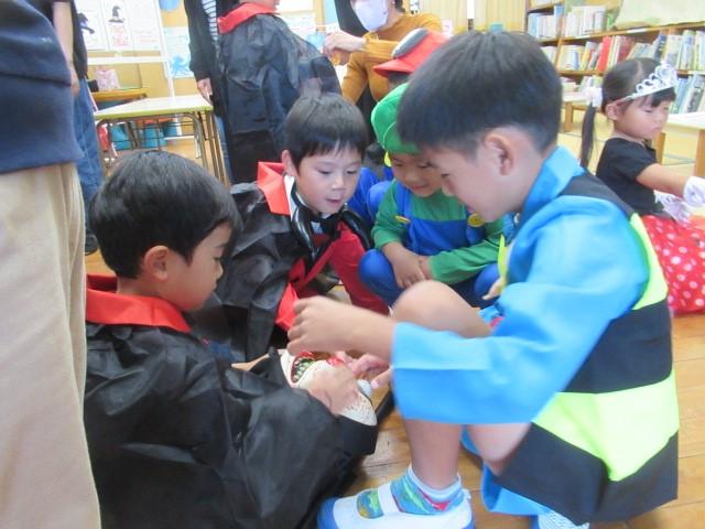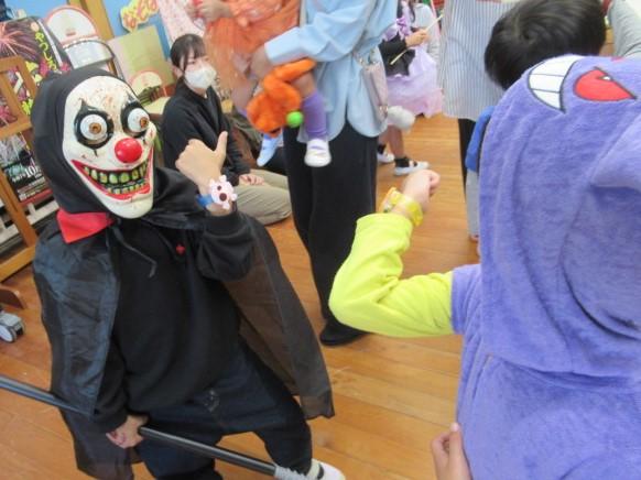 ☆子供たちは、お互いの仮装に喜び合いながら、会が始まる前のひと時を楽しんでいました。