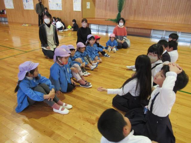3月6日(水)植柳幼稚園のお友達が、麦島幼稚園に来てくれましたふれ合い遊びやじゃんけん遊び、ひもの長さ競争ゲームなど、ゲストティーチャー岡田先生にいろいろな遊びを教えていただきながら、楽しく交流することができました