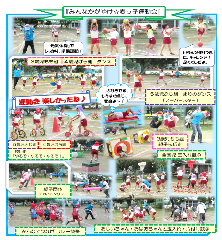 ☆麦島幼稚園は、園庭と小学校の運動場が隣接しています。