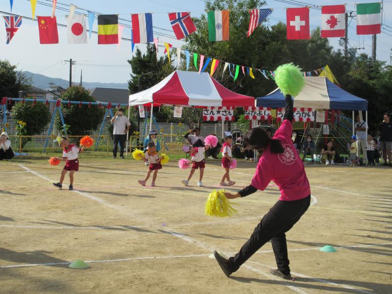 次にALTの先生方との「えいごであそぼう」の時間がありました。今年度は麦島、植柳の両園でそれぞれのALTの先生方とふれあうことができ、楽しみながら英語に親しむことができました