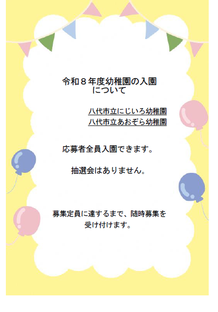令和8年度にじいろ幼稚園の入園受付をされた方
