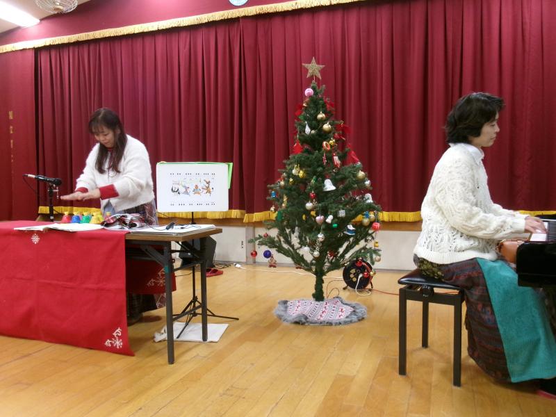 22日にムジカブレーメンさんのお二人をお迎えし、クリスマスコンサートを行いました。ベルハーモニーによる澄んだ音色が会場に響くと、子供達は静かに耳を傾け、音楽の美しさを感じとっている様子が見られました。