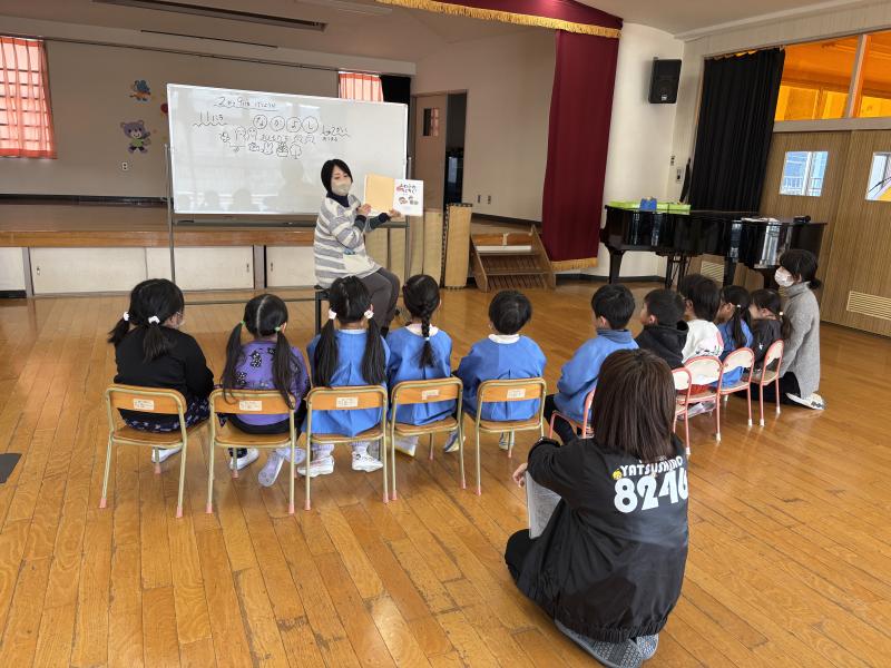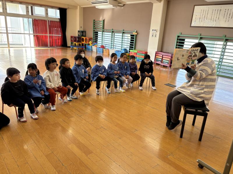 毎月11日は、幼稚園みんなで「なかよし集会」を行っています。今月は人権の育成のねらいから「絵本を通して人を思いやる気持ち