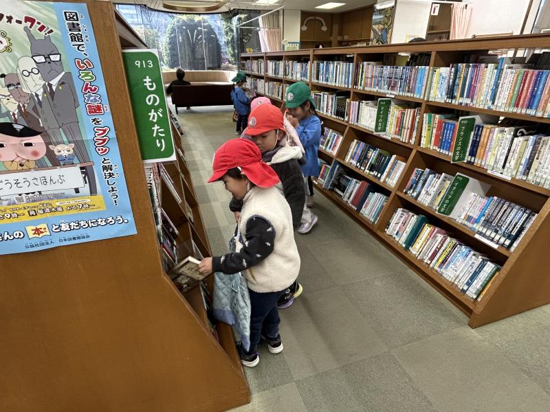 ⦅絵本を探しに行こう!⦆友達オススメの絵本を紹介してもらったり、読みたい絵本を図書館職員さんに検索していただいたりして、絵本に親しむ時間になっています。