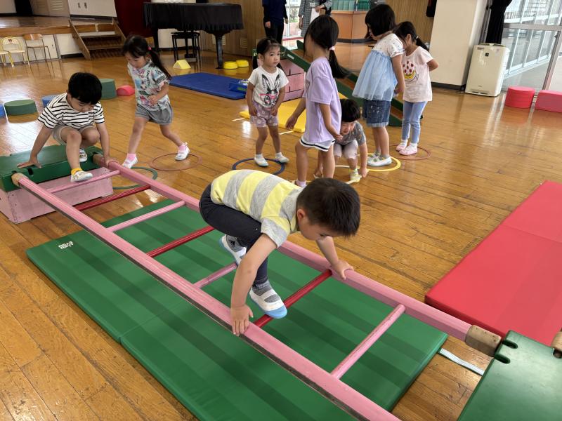 音楽に合わせて、動物になりきったり、寝転んでリラックスしたりと、楽しい時間を過ごしました
