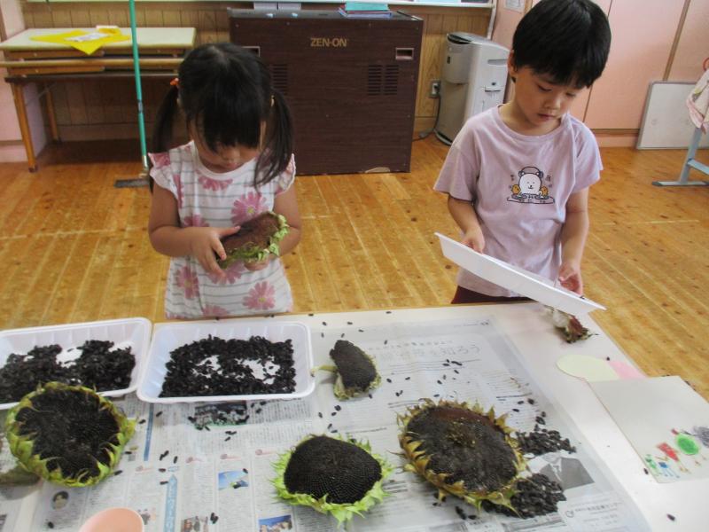 夏の暑さに負けず、みんなに元気をくれていたヒマワリの種を収穫しました。