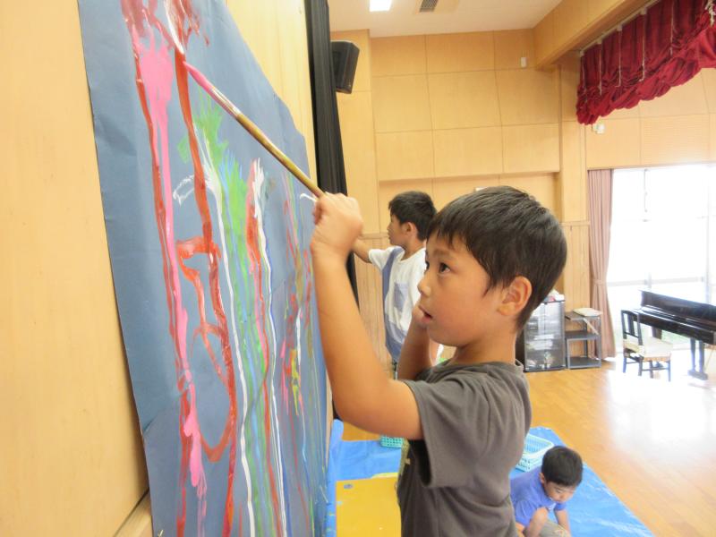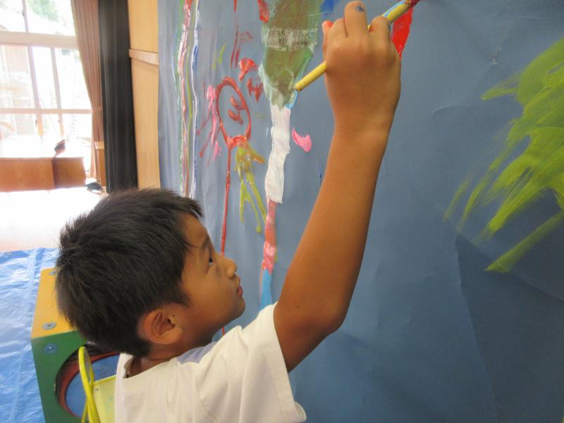 子供たちも会場でみたり、近くでみたりしてとても印象的だったようです。年長児は絵に描いてみようということになり数日間かけて完成させました