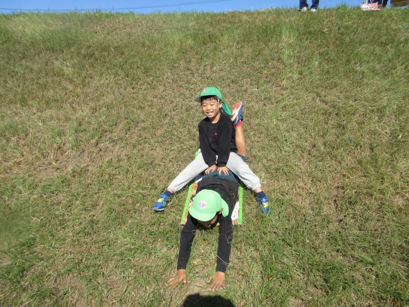 先日、代陽幼稚園、麦島幼稚園と交流をし、一緒に草スキーを楽しみました!最初はうまく滑ることができなかった子供たちも、すぐにコツをつかみ体のバランスを取りながら、繰り返し取り組んでいました。慣れてくるといろいろな滑り方に挑戦し、休む間もなくたくさん楽しみました♪