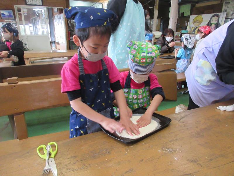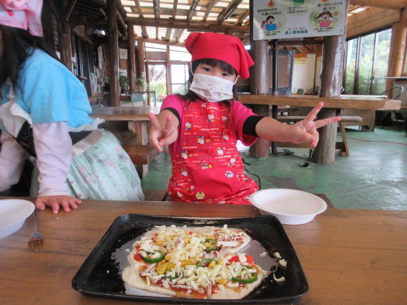 麦島幼稚園の皆さんと一緒に合同でお別れ遠足に行きました!行先は「食と農の体験塾」さん星宇城市三角町にある天草や有明海を一望できる素晴らしいロケーションにある食育体験施設ですひらめき親子でバスに乗って向かい、クッキーやピザ作りを楽しみました興奮・ヤッター!石窯で焼いたクッキーやピザ、自分たちで作る喜びも味わいながらおいしくいただきました給食・食事また、手作りの野菜スープや羽釜で炊いたご飯のおにぎりも、とてもおいしかったですハート塾長の方に、食事や栄養の大切さを教えてもらい、最後の遠足は親子、友達と一緒に思い出に残るよい体験ができました花丸